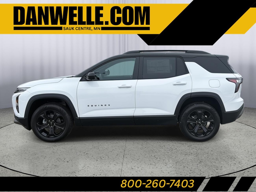 This New 2026 Chevrolet Equinox AWD LT, is Summit White in color with a Black interior. Stock Number 411751. You can connect with us by calling (320) 352-5255. Important Package and Feature Information Convenience Package II ($2,050 value)Driver 8-Way Power Seat Adjuster2-Way Power Driver Lumbar Control Seat AdjusterCabin Humidity and Windshield SensorIntermittent Front Rain-Sensing WipersDual-Zone Automatic Climate ControlHeated Wiper ParkWireless Phone Charging For Portable DevicesEvotex Seat TrimAutosense Hands-Free Programmable Power LiftgateProgrammable Universal Home RemoteOverhead Sunglass StorageMidnight Edition ($1,045 value)High Gloss Black Mirror Caps19" Black Painted Aluminum Wheels235/55R19 All-Season Blackwall TiresRoof RailsSafety and Technology Package ($945 value)Front Fog LampsRear Pedestrian AlertHD Surround VisionTraffic Sign RecognitionPreferred Equipment Group 2LTRear Camera MirrorRear Camera Mirror Washer Safety and Security Pedestrian impact prevention - An extra step toward safety. Pedestrians don't always stop, look, and listen, but with Pedestrian Impact Prevention, your vehicle is equipped to better see them and avoid them. This system constantly monitors the road ahead to identify and track pedestrians. It projects that image to an interior display screen, AND should an impact become likely, Pedestrian impact prevention takes steps to avoid a collision. Forward collision mitigation - Forward thinking. You look away for just a second and suddenly the vehicle in front of you has stopped. That's when the forward collision mitigation system comes to life. When it senses an impending impact, it will activate a combination of features to help prevent or reduce the severity of an accident. Forward collision mitigation is always looking ahead. Rear camera - Watching your back! The rear camera helps you see obstacles and hazards you otherwise couldn't by showing enhanced images of what is behind you. The rear camera is an extra set of eyes that's both convenient and safe. Rear collision mitigation - It has your back. Rear collision mitigation uses sensors to monitor the area behind you. If it senses an impending crash, it activates certain features to help prevent a collision or reduce the severity of it. Put your worries behind you with rear collision mitigation.Technology and Telematics Mobile hotspot - WiFi on the fly. Connect your devices to the Internet through your vehicles private mobile hotspot and take the internet wherever your journey takes you, without eating up your data allowance. Find the hotspot with mobile hotspot. EMISSIONS, COLORADO, CONNECTICUT, DELAWARE, MAINE, MARYLAND, MASSACHUSETTS, MINNESOTA, NEVADA, NEW JERSEY, NEW MEXICO, NEW YORK, OREGON, PENNSYLVANIA, RHODE ISLAND, VERMONT AND WASHINGTON STATE REQUIREMENTS, ENGINE, 1.5L TURBO DOHC 4-CYLINDER, SIDI, VVT, TRANSMISSION, 8-SPEED AUTOMATIC, AXLE, 3.47 FINAL DRIVE RATIO, WHEELS, 19" (48.3 CM) BLACK PAINTED ALUMINUM, TIRES, 235/55R19, ALL-SEASON BLACKWALL, SUMMIT WHITE, MOSAIC BLACK METALLIC ROOF, SEATS, FRONT BUCKET, BLACK, EVOTEX SEAT TRIM, CONVENIENCE PACKAGE II, MIDNIGHT EDITION, SAFETY AND TECHNOLOGY PACKAGE, ROOF RAILS, FOG LAMPS, FRONT, MIRROR CAPS, HIGH GLOSS BLACK, WIPERS, FRONT RAIN-SENSING, INTERMITTENT, HEATED WIPER PARK, REAR CAMERA MIRROR WASHER, LICENSE PLATE FRONT MOUNTING PACKAGE, LIFTGATE, AUTOSENSE, HANDS-FREE POWER PROGRAMMABLE, SEAT ADJUSTER, DRIVER 8-WAY POWER, SEAT ADJUSTER, 2-WAY POWER DRIVER LUMBAR CONTROL, UNIVERSAL HOME REMOTE, WIRELESS PHONE CHARGING, FOR PORTABLE DEVICES, AIR CONDITIONING, DUAL-ZONE AUTOMATIC CLIMATE CONTROL, SENSOR, CABIN HUMIDITY AND WINDSHIELD TEMPERATURE, REAR CAMERA MIRROR, SUNGLASS STORAGE, OVERHEAD, HD SURROUND VISION, REAR PEDESTRIAN ALERT, TRAFFIC SIGN RECOGNITION Come on in to Dan Welle's Southtown Chevrolet today at 1505 Main Street South Sauk Centre MN 56378 or call (320) 352-5255 to schedule a test drive!